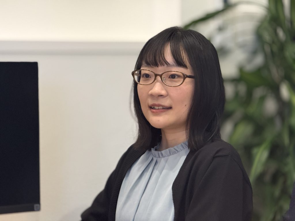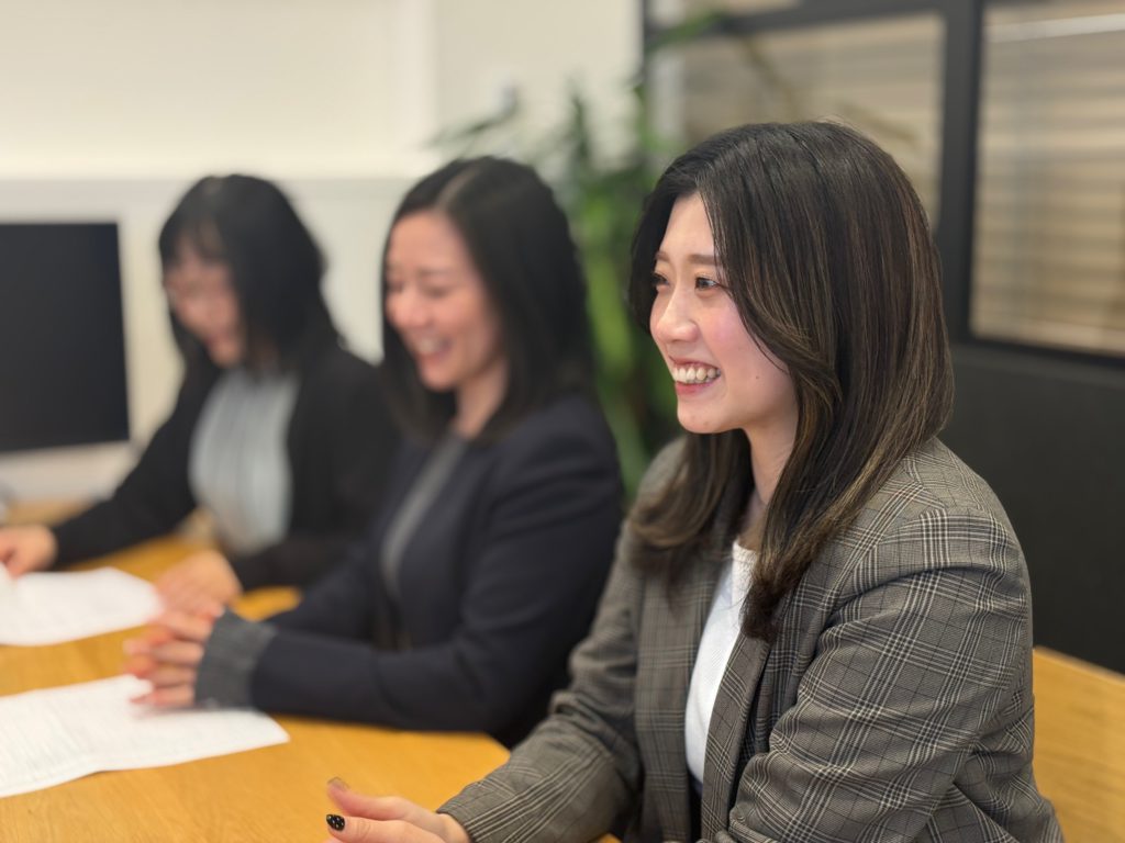 ・品田さん(サンリー・ホールディングス/総務):石川県出身。前職は不動産会社の受付事務をしていたが、業務の幅を広げるため2025年にサンリーグループに入社。趣味はお菓子作り、箸置き集め。(写真中央)